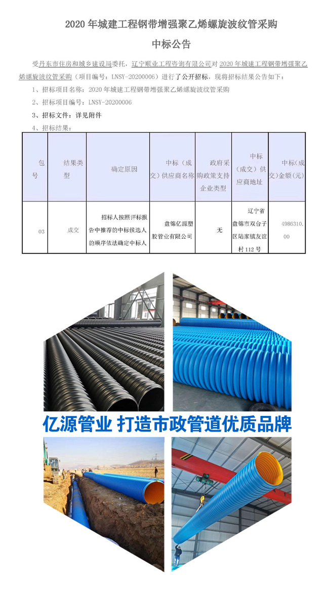 【熱烈祝賀公司中標2020年城建工程鋼帶增強聚乙烯螺旋波紋管采購工項目!】
