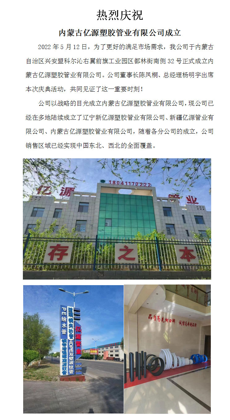 【熱烈慶祝內蒙古億源塑膠管業有限公司成立】